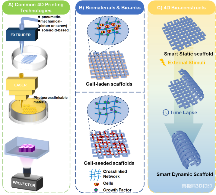 综上所述,4D打印用于生物医学应用是一个新兴的研究领域,已证明其在下一代组织工程和生物医学器械的突出潜力。虽然该领域还存在若干挑战,多学科的交叉与合作将会加快推进4D生物打印技术的发展,并最终实现其临床转化。