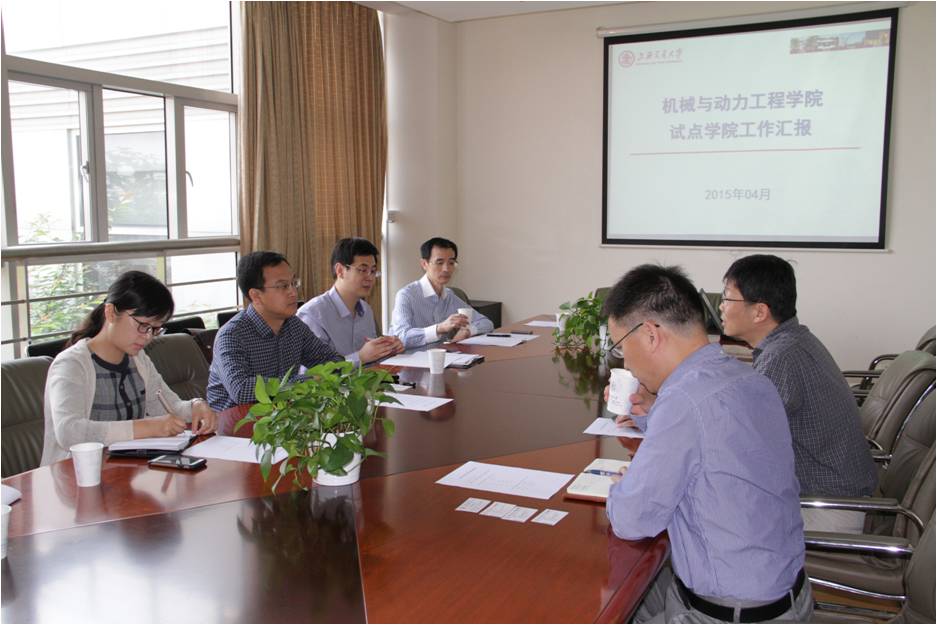 5月7日上午,在上海交通大学机械与动力工程学院,调研组一行与该院党委书记杜朝辉、副书记孟雁、副院长林赫及各系所负责人进行了座谈。杜朝辉详细介绍了学院的整体情况和正在推进的国家试点学院建设、人才培养、人事制度、教育教学改革等各方面的做法,重点介绍了试点学院建设中所涉及的师资队伍建设、教师岗位分类聘任和分类考核的做法以及效果、优化本科生生源和推动学院国际化具体举措等。
