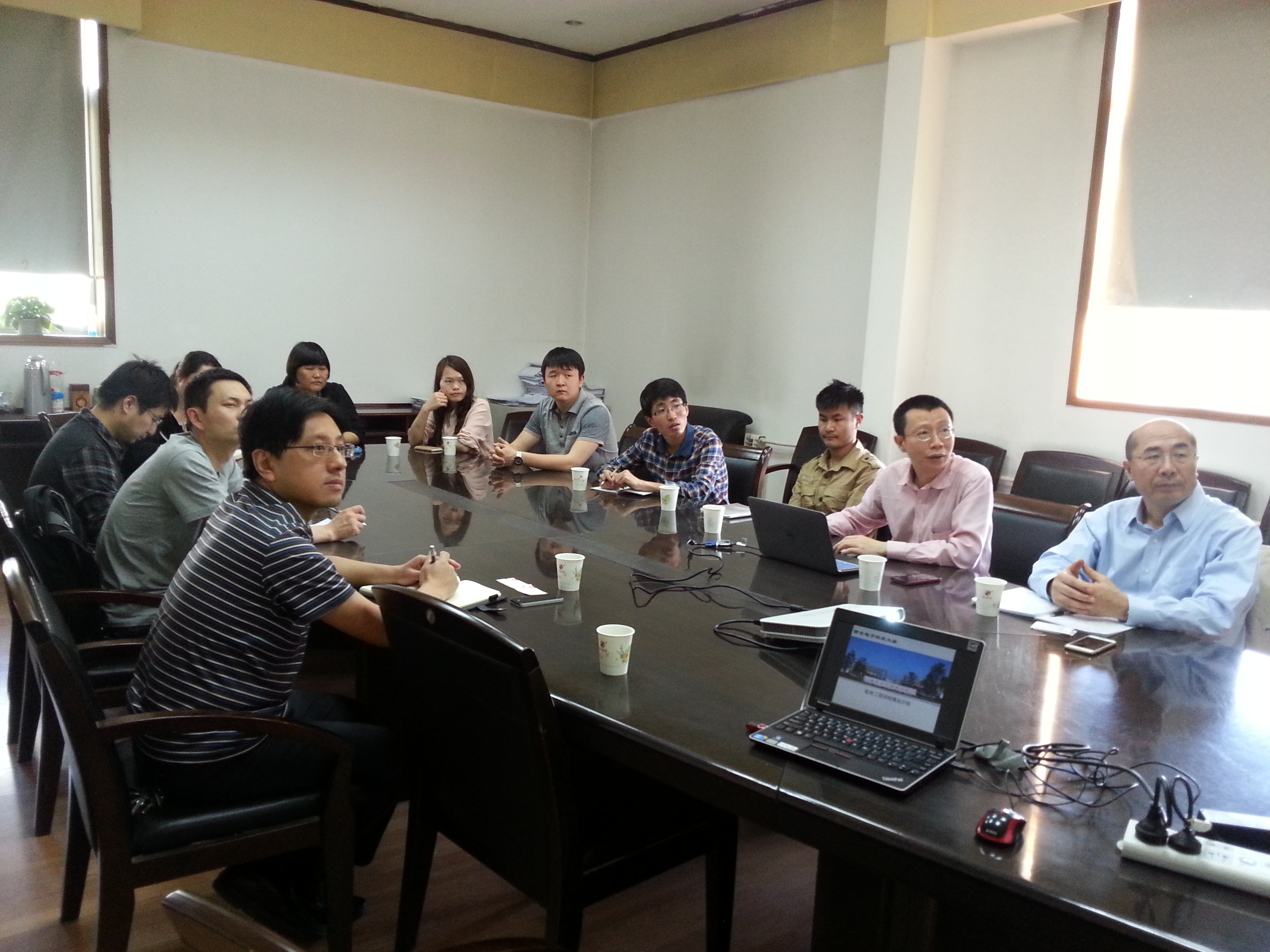 会上,与会教师代表也向杨福军总经理、方华经理介绍了自己的研究方向和取得的成果。双方还就课题依托企业平台产业化孵化、学院课题组承接企业开发项目和联合开发概念样机进行了深入地探讨。