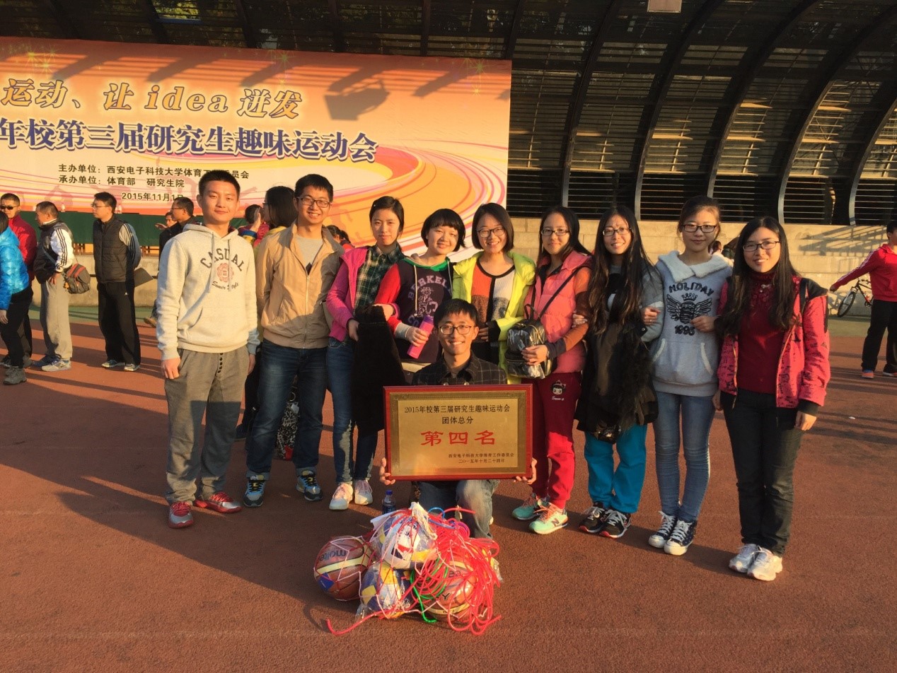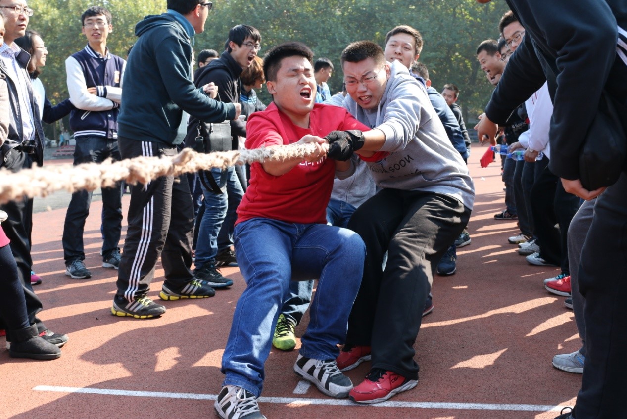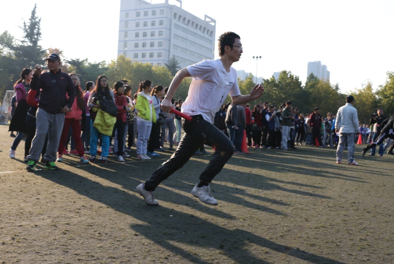 (通讯员 王冬阳)2015年11月1日,秋色宜人,天朗气清,西安电子科技大学第三届研究生趣味运动会在老校区操场正式拉开序幕。运动让idea迸发!为促进学院之间的交流,增加各学院研究生之间的互动,本次运动会以院为单位进行比赛。比赛项目共有9项,包含8个竞赛项目(5人持竿蛇形往返接力、20米足球绕杆接力、篮球运球上篮接力、拔河、1分钟个人跳绳团体赛、集体跳大绳、30米绑腿同行比赛、20人×60米穿梭接力)和1个表演项目(相扑擂台表演赛)。