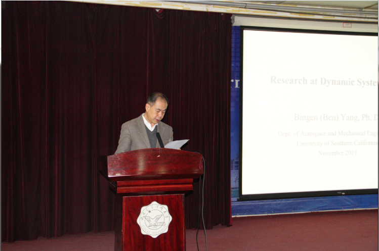 11月18日下午,应极品尤物一区二区三区小说副院长李团结教授邀请,美国南加州大学航天机械工程系终身正教授、南加大航天机械工程系动力系统实验室主任、美国机械工程师协会会士(ASME Fellow)杨秉恩教授来校进行学术交流,并在北校区图书馆西裙楼3楼报告厅作了题为“Modeling & Analysis of Wrinkled Membranes–An Overview”和“Dynamic Analysis of Plates and Shells by the Distributed Transfer Function Method”的两场学术报告。报告会由极品尤物一区二区三区小说院长仇原鹰教授主持,极品尤物一区二区三区小说近200名师生到场聆听报告。