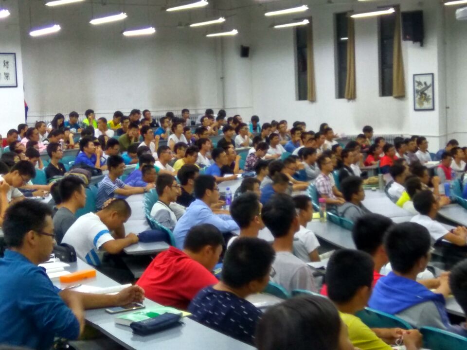 六点半左右,大一新生陆续来到教室就座,同学们热情高涨、兴致十足。讲座于七点正式开始,张震老师以一个小故事作为开端,引出本次讲座的内容。在之后两个小时的讲座中,他与同学们就大学生活进行了多方面的深入交流,从大一新生如何快速适应大学生活,到学校各级组织和社团的基本情况,他均悉心讲解。讲座临近尾声,同学们认真填写了调查问卷,表示从本次讲座活动中受益良多。九点,本次主题讲座圆满完成,大一新生有序散场。