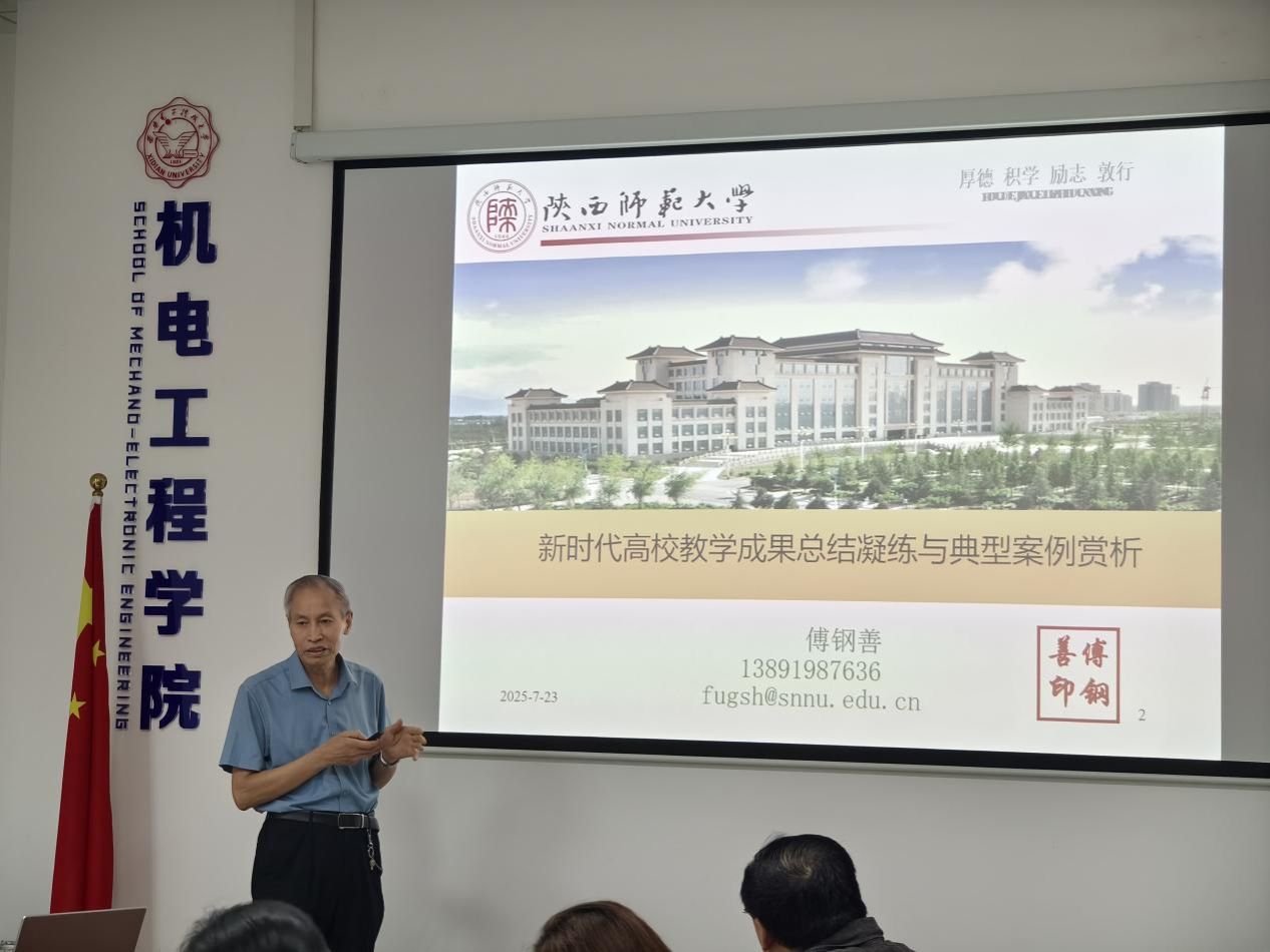 (通讯员 王飞 张琼方)为落实“十四五”教育发展规划对高等教育内涵式发展的要求,推动学院教育教学改革创新,7月23日,西安电子科技大学极品尤物一区二区三区小说聚焦“新时代高校教育教学理念研讨与成果凝练”核心议题,特邀国家级教学名师傅钢善教授开展专题研讨会。本次会议是学院深化教学改革、提升教师教研能力的重要举措,吸引了学院教学骨干、青年教师及教学管理团队近30人参与,现场学习氛围浓厚。