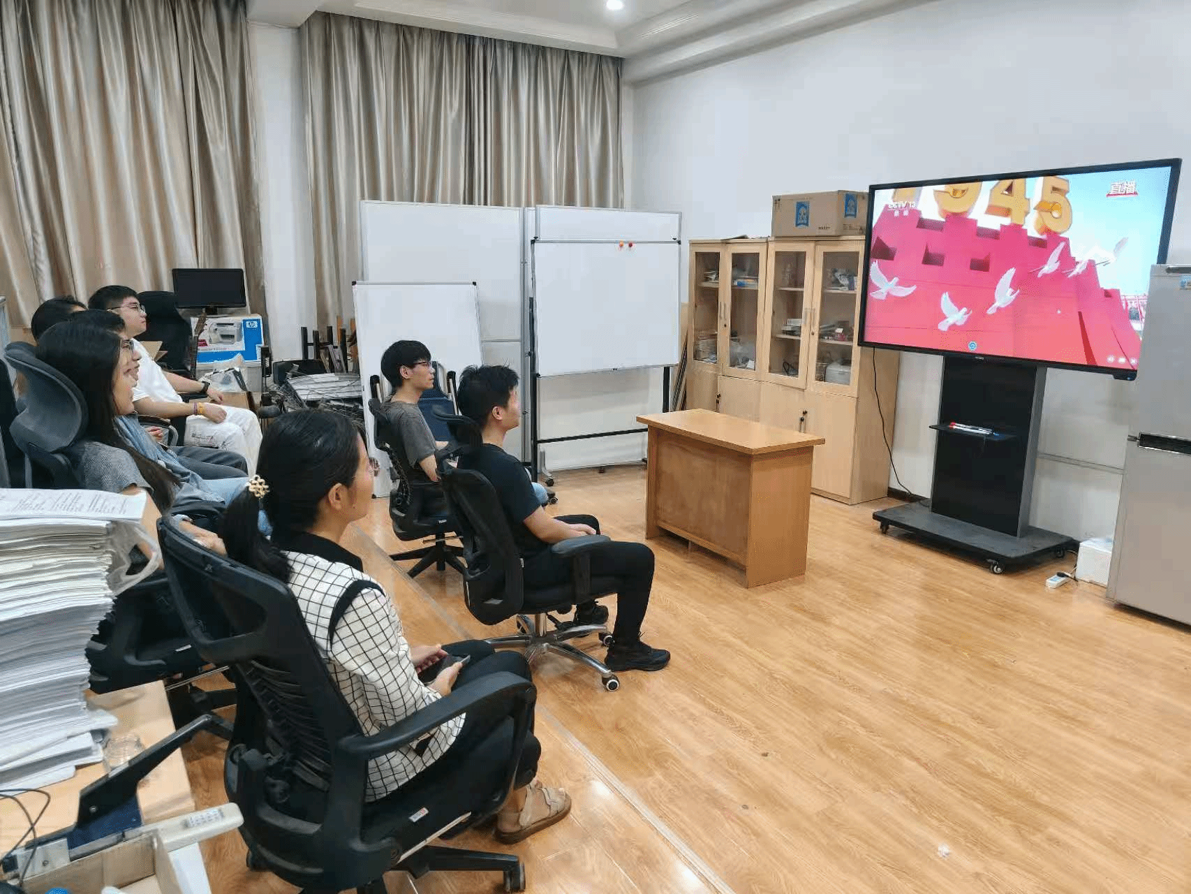 可展开结构及机器人党支部集中观看了抗战胜利80周年阅兵,大家内心无比激动。当整齐的方队迈着坚定步伐通过天安门,当先进武器装备一一亮相,大家都深刻感受到了祖国的强大。作为研究生党员,大叫表示,要传承伟大抗战精神,在科研道路上勇攀高峰,为实现中华民族伟大复兴贡献自己的力量。