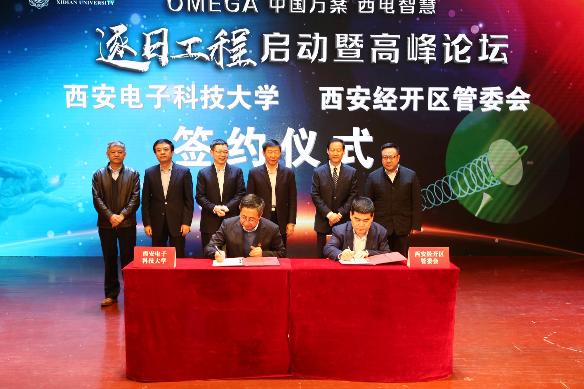 副校长李建东与西安市经开区管委会主任钱虎威共同签署西安电子科技大学与西安经开区管委会合作共建“逐日工程”的协议。根据协议内容,经开区将支持西电在经开区建设空间太阳能电站系统研究基地,包含空间太阳能电站系统地面验证中心、空间太阳能电站系统研究创新中心和空间太阳能电站系统成果转化中心等,开展空间太阳能电站地面验证系统研发工作。