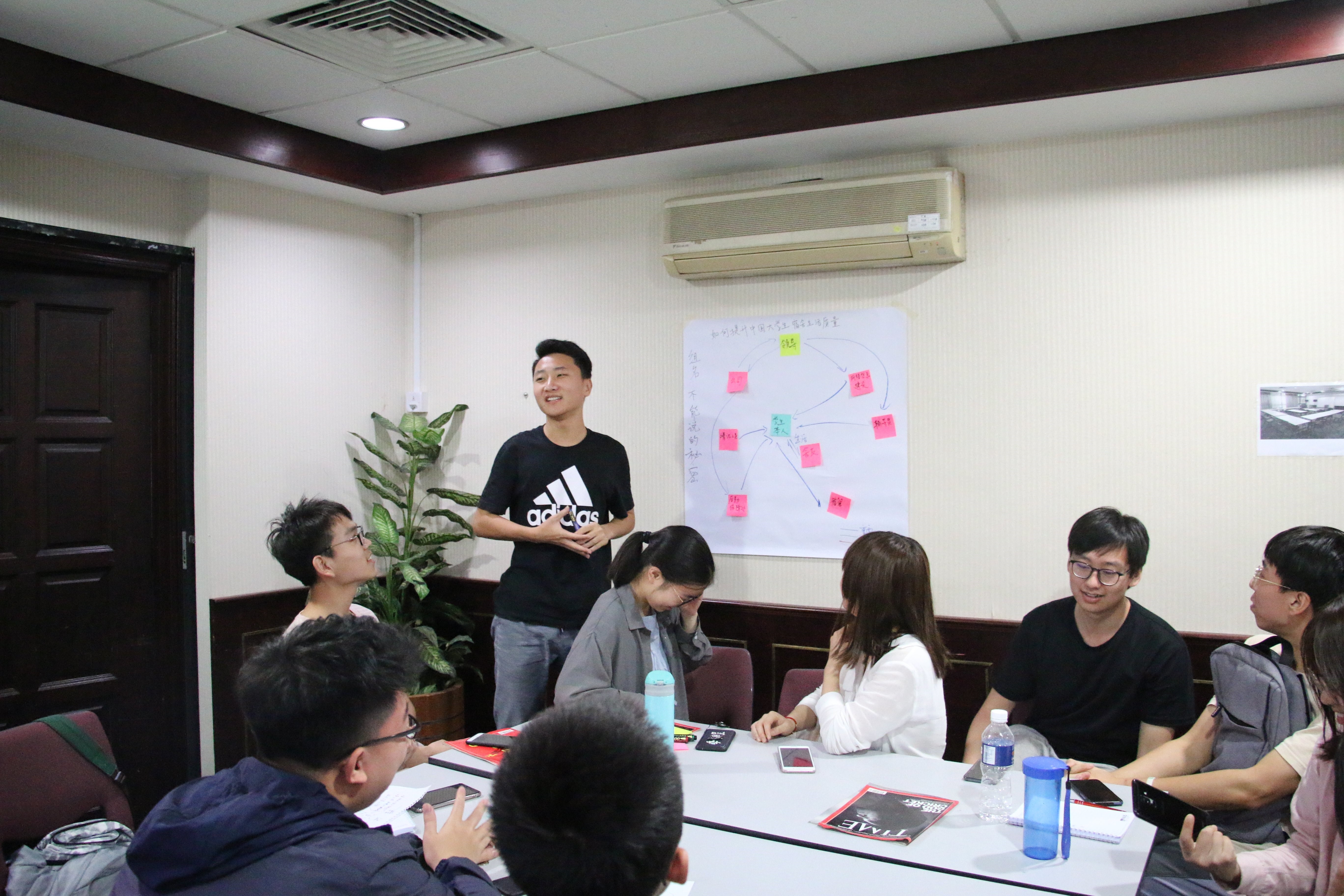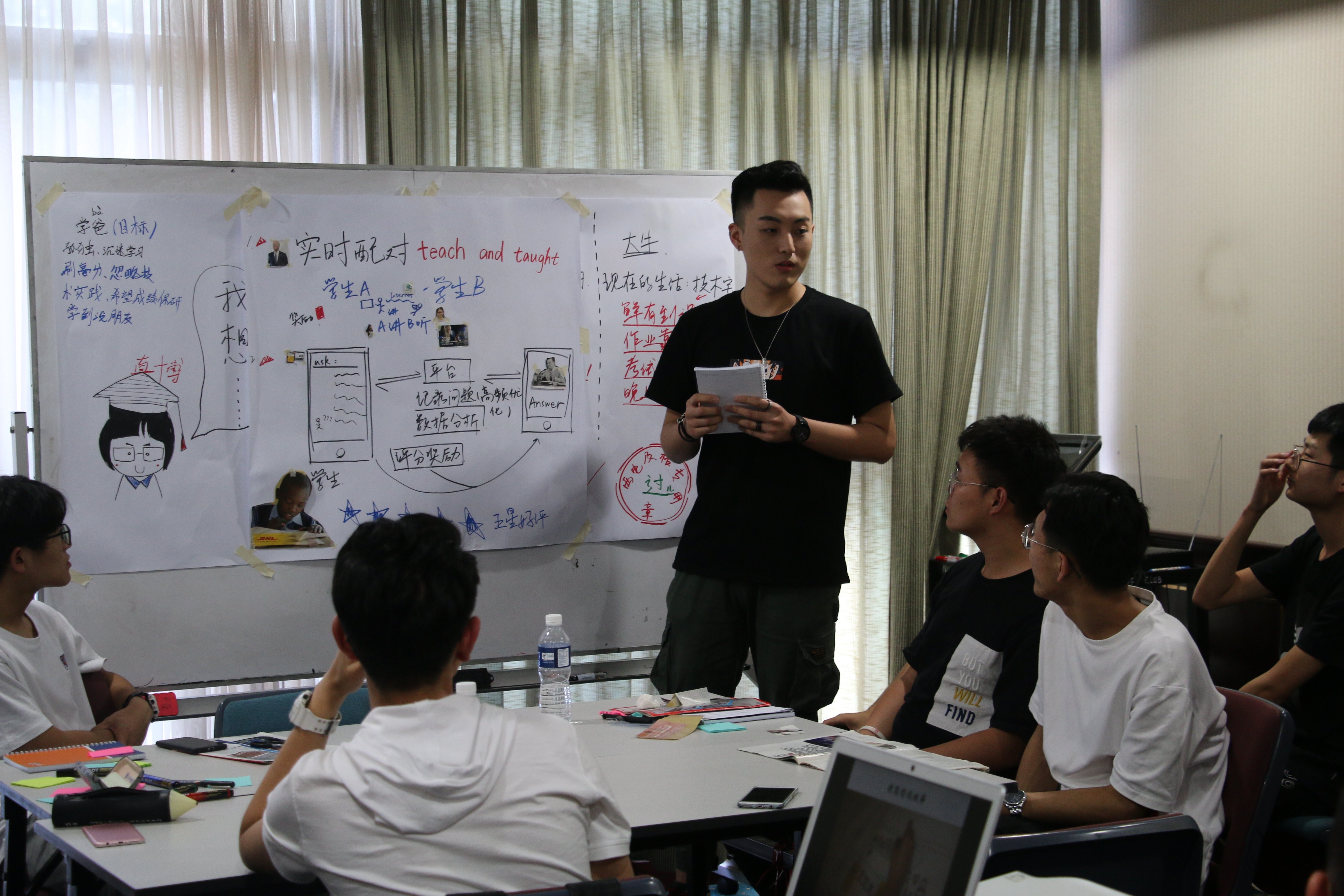 陈院长首先按照设计思维的5个阶段(深层次了解用户需求——定义问题与设计挑战——产生设计意念——产生设计原型概念——用户测试方法),一步步扩宽学生思维,引导学生从校园生活中发现亟待解决的问题。例如:如何提升大学生生活质量、快递寄取方式的改良、选课系统的优化以及基于人工智能教育方式的改善等。随后各个小组通过对用户(学生)的采访,模拟了用户群中不同的人物画像。根据各组基于采访形成的人物画像,进一步描画了客户体验之旅,又通过突出瓶颈问题和勾画紧张局面帮助方案优化者找到问题的痛点,从而达到为小组提出优化方案提供了着手点。