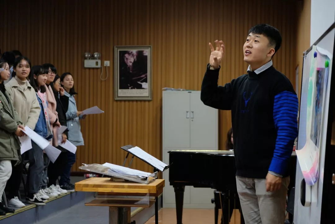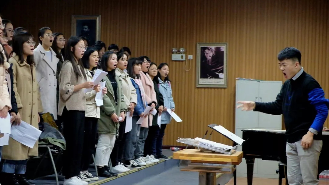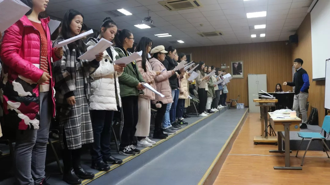 在合唱队选拔阶段,同学们踊跃报名参加,现场歌声随钢琴的弹奏高低起伏、停顿转折,令人沉醉其中。最终一百余名同学加入极品尤物一区二区三区小说合唱队,并划分了男高音、男中音、女高音、女中音四个声部。