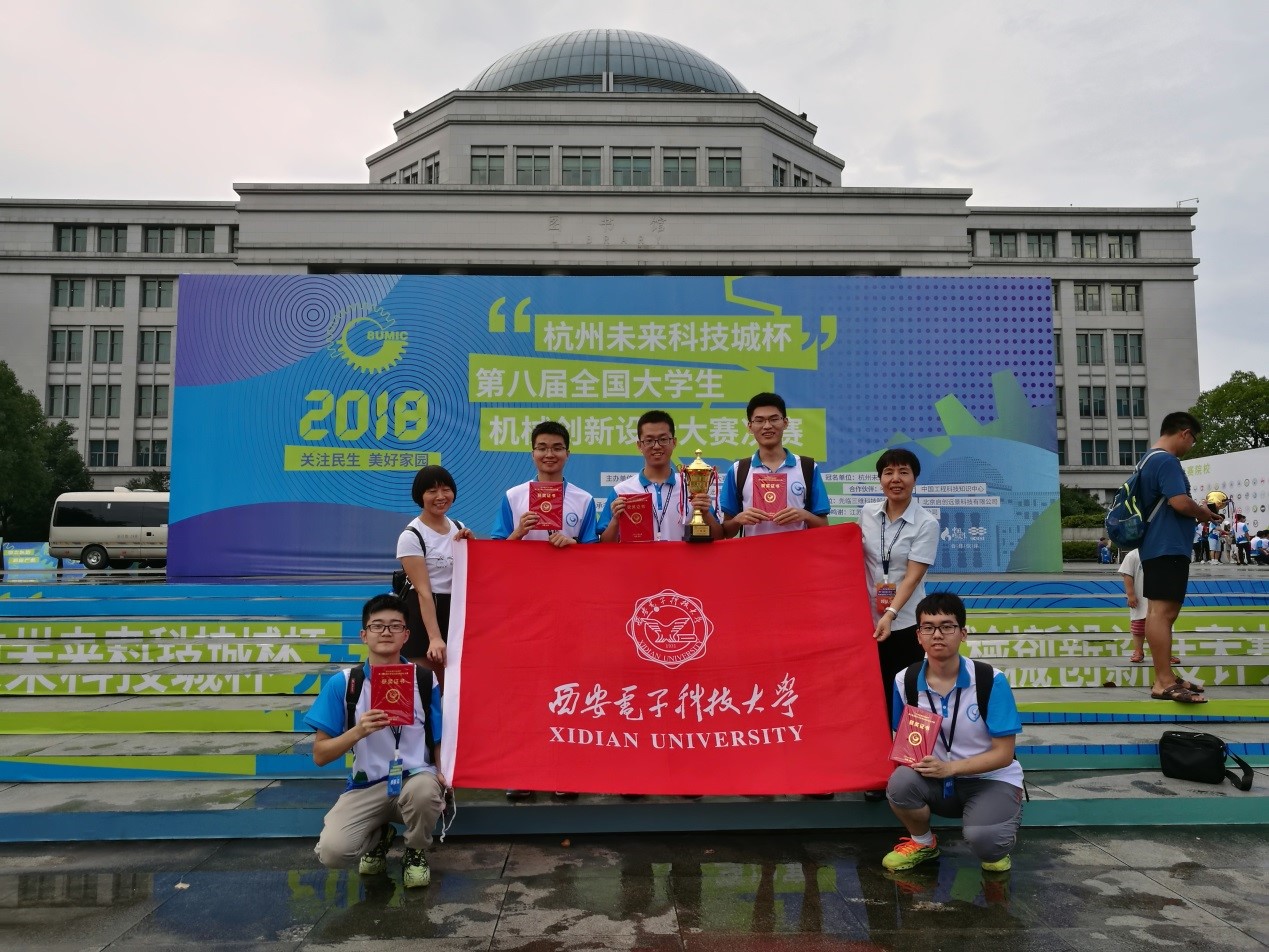 (通讯员:段清娟) 第八届全国大学生机械创新设计大赛现场决赛于2018年7月22日至7月24日在浙江工业大学举行。西安电子科技大学共有四支队伍从陕西赛区脱颖而出,成功晋级全国决赛,获得1项国家一等奖,2项国家二等奖,是该赛事学校历史最好成绩。