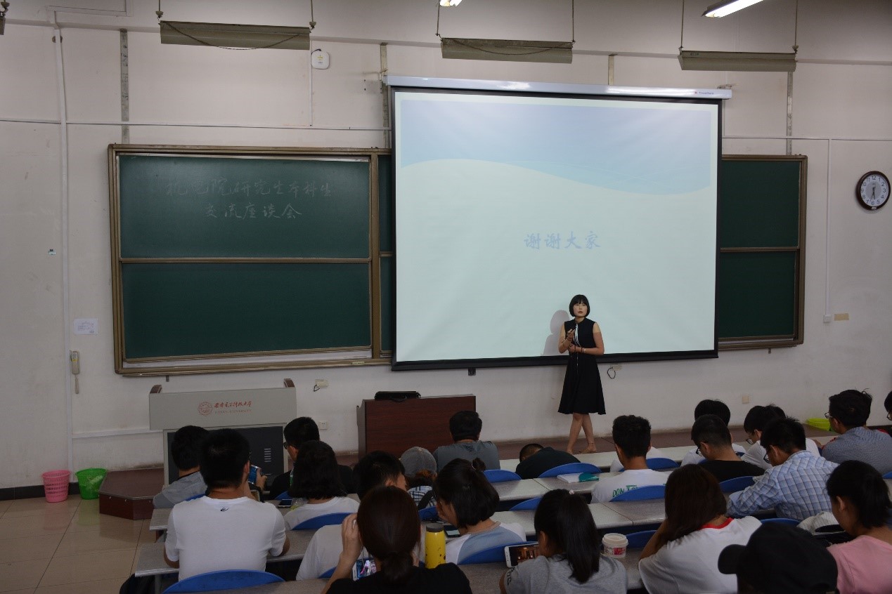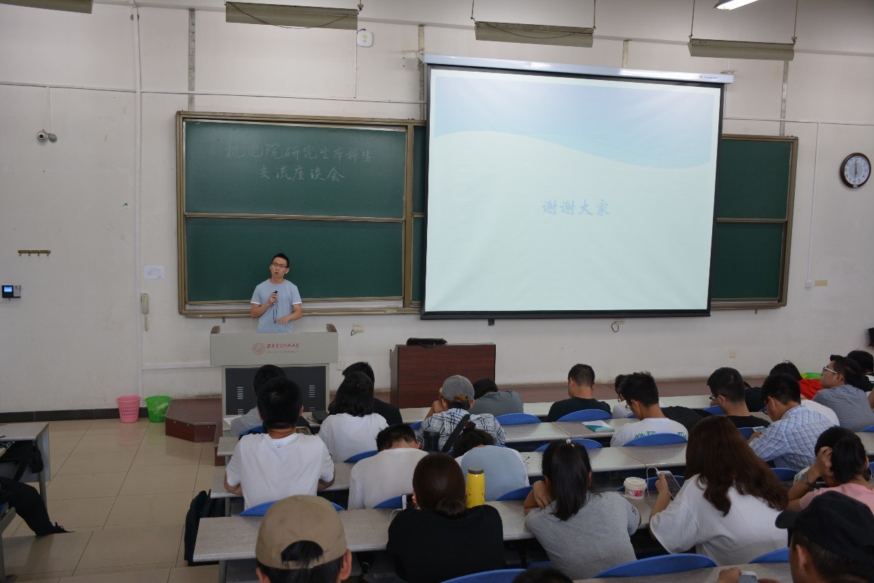 机械制造及其自动化专业的研究生王浩同学与同学们进行了充分的交流,主题是“你选择的生活应该是你所热爱的”。王浩和本科生们分享了他研究生生活的点滴,以自身经历告诫同学们要重视保研之路的点滴积累,化热爱为动力,为未来做好充分的准备。
