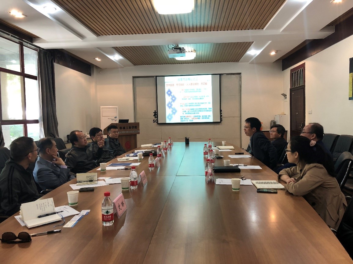 陈雪峰首先详细全面的介绍了机械工程学院的学科发展历程及概况,结合第四轮学科评估体系及结果分析了学科现状,总结了学科特色和亟待解决的问题。随后,双方就以推进“一流大学、一流学科”建设为目标的分层次、多维度改革进行了交流和讨论,重点涉及了教师岗位聘任、绩效津贴改革、人才培养新思路新途径、本科专业工程教育认证、科研平台建设等方面,热烈讨论了学院、学科发展过程中如何更好更有效的推进“引人才、争项目、求合作、建平台、筹经费”等五大核心任务。