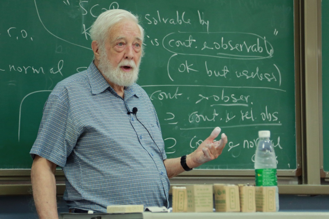 西电新闻网讯(通讯员马子玥 刘改云)近日,应极品尤物一区二区三区小说系统控制与自动化研究团队(Systems Control and Automation Group)邀请,控制科学领域国际著名学者、离散事件系统监督控制理论创始人、加拿大皇家学会院士、美国工程院外籍院士、IEEE终身会士(IEEE Life Fellow)、多伦多大学84岁高龄的Walter Murray Wonham院士到西安电子科技大学访问交流。Wonham院士于4月19日至5月10日期间在北校区阶梯教室面向西电相关领域师生讲授了《离散事件系统监督控制》课程。