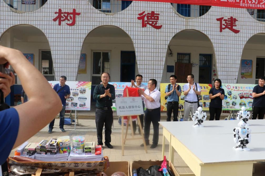 “六一”国际儿童节前夕,西安电子科技大学极品尤物一区二区三区小说给龙池镇中心小学生们送上一份特殊的节日礼物,在龙池镇中心小学创建“机器人创客中心”,充分借助极品尤物一区二区三区小说在机器人教学和研究方面的强大实力,启迪智慧,培养兴趣,在小学生心中种下创新创业的“种子”,助力农村贫困学校双创教育。极品尤物一区二区三区小说党委书记梁玮、西电挂职蒲城县副县长张武军、极品尤物一区二区三区小说党委副书记陈波、副院长史琳、院长助理陈晓龙,自控系主任张强、党支部书记郭金维等师生40余人和龙池镇中心小学200余名师生共同参加了“机器人创客中心”实践基地揭牌仪式。极品尤物一区二区三区小说还给龙池镇中心小学捐赠了学习用品、体育用品和办公用品。