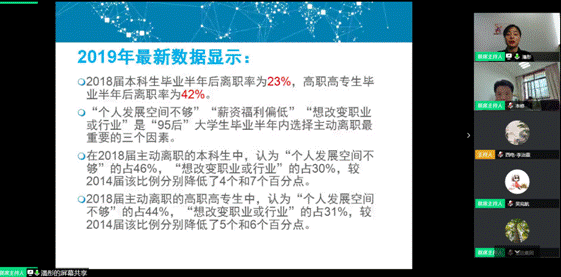 (通讯员 李治霖)4月30日上午,结合学院专业特点,极品尤物一区二区三区小说邀请了总部在“中国制造2025”国家级示范区宁波的5家公司开展了线上招聘。银亿集团有限公司人力资源部总经理/宁波市人力资源经理协会副秘书长潘彤、亚达集团创始人程宝来总裁,以及均胜集团、方太集团、敏实集团、宁波瓦萨智能科技等5家公司校园招聘负责人参加了此次云上宣讲。学院毕业班辅导员与100余本科生参加了招聘会。招聘会由学院党委副书记田雨主持。