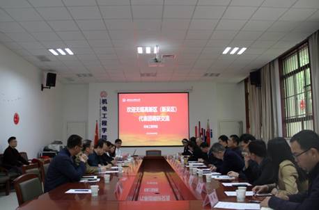 张博汇报了我校学生近年来在无锡就业的情况,黄进指出经过前期走访发现高新区产业与机电院高度契合,机电院以“有情怀,有追求,有成效”的发展模式愿意探索与高新区的合作模式与人才培养方案。