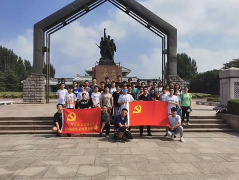 7月18日,电子封装系党支部书记王永坤与电子封装系党员教师辛菲一同在扬州组织了一次党史教育进生产实习的主题党日活动——缅怀革命先烈的英雄事迹,重温党的历史。在扬州杨杰电子科技股份有限公司实习的24名学生与在江新电子有限公司生产实习的12名学生全部参加了本次党史教育与学习活动,如图1所示。