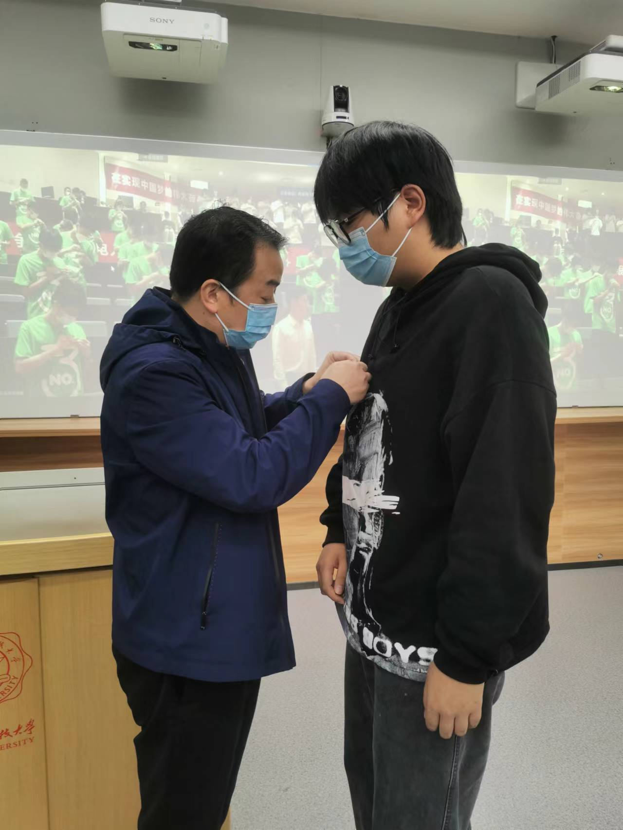 在典礼开始之前,学院研究生会的同学对活动现场进行了布置,制作了各式各样的欢迎KT板,和新生一起营造了温馨的现场氛围。