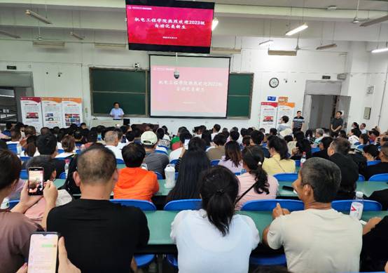 陈晓龙向新生及新生家长介绍了学院的发展历史,并从学科设置、师资力量、组织机构、国际合作、学生活动、就业情况等方面详细展开,以学生未来发展为出发点进行阐述。他希望家长能与学院一起关注学生的全方位健康成长,也期盼着学院在大家支持下培养出学贯中外、止于至善,具有感恩、责任、分享意识的优秀学子。他希望,同学们要传承西电的“石凳文化”和刻苦钻研的学风,遇事要从长远发展的目光来看待问题,并多多参加实践、竞赛等活动来提升自己的技术与能力,用学识反馈社会与国家。他表示,下一步学院将充分发挥多学科优势,深入开展学院时代新人铸魂工程,为国家培养具有拓新精神、家国情怀、责任担当、过硬本领的时代新人。