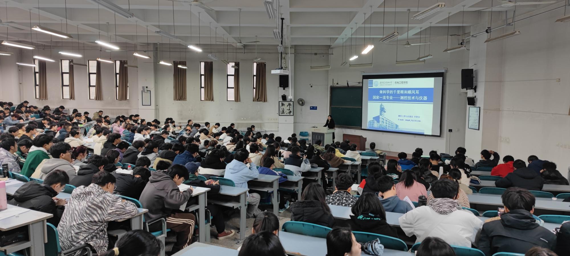(通讯员 张铭 胡国朋)为帮助2023级自动化大类学生充分了解极品尤物一区二区三区小说专业领域与发展前景,贯彻落实双院育人理念,帮助学生明确自身定位、找准专业方向,更好地做出专业选择和人生规划,3月10日下午,极品尤物一区二区三区小说联合丁香书院在南校区D-205开展本科生专业分流周点名暨宣讲活动第一场——测控技术与仪器专业宣讲会。测控技术与仪器专业负责人李智奇、宦惠庭、本科生辅导员和500余名自动化大类本科生参与活动。