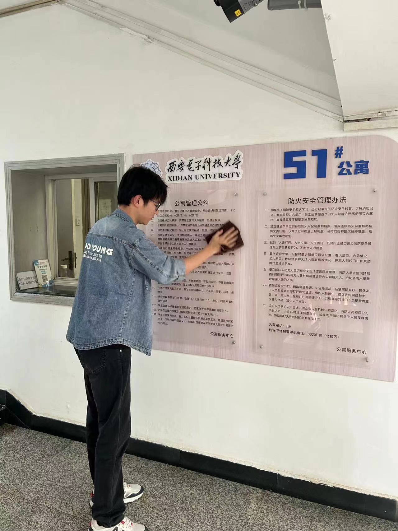 4月12日,是“消防安全检查员”的服务时间。他们检查宿舍楼内的消防器材和安全设施,协助公寓、保卫处对学生宿舍进行宿舍安全、用电管理等安全检查,从而增强了同学们的消防安全意识,减少了学生宿舍楼的安全隐患。
