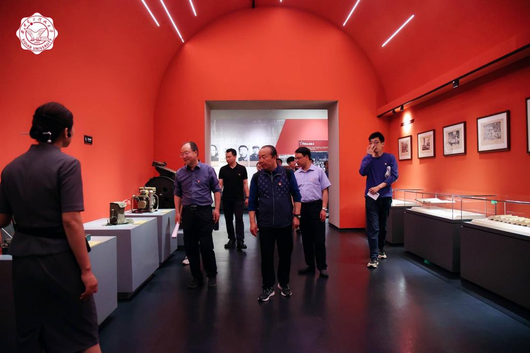 学院一行随后前往国家版本馆西安分馆开展参观学习。在讲解员带领下,师生党员了解了国家版本馆西安分馆“一总三分”的总体布局和西安分馆(永济阁)的设计理念、建筑特点、收藏版本等情况,参观了文济阁通顶书墙、《赓续文脉踔厉前行—中华文化经典版本展(西部篇)》和《楮墨遗珍万里同风——丝绸之路版本展》。学院师生党员认真观看一个个历史文物,各类载有中华文明印记和地方特色印记的版本,回溯历史长河,感悟中华优秀传统文化、革命文化和社会主义先进文化精髓,体验中华文化种子基因库的时代活力。