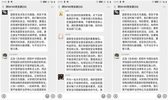 国家安全,人人有责。通过本次主题教育,西安电子科技大学极品尤物一区二区三区小说2018级研究生党员都提高了自己的国家安全意识,增强国家安全责任,作为中共党员在今后的生活和科研中定会自觉和主动的维护国家安全,与损害国家安全的行为作斗争,以身作则,团结一心,共同维护国家安全。为祖国长治久安贡献自己的力量,为实现“两个一百年”奋斗目标、实现中华民族伟大复兴的中国梦提供牢靠坚强安全保障。