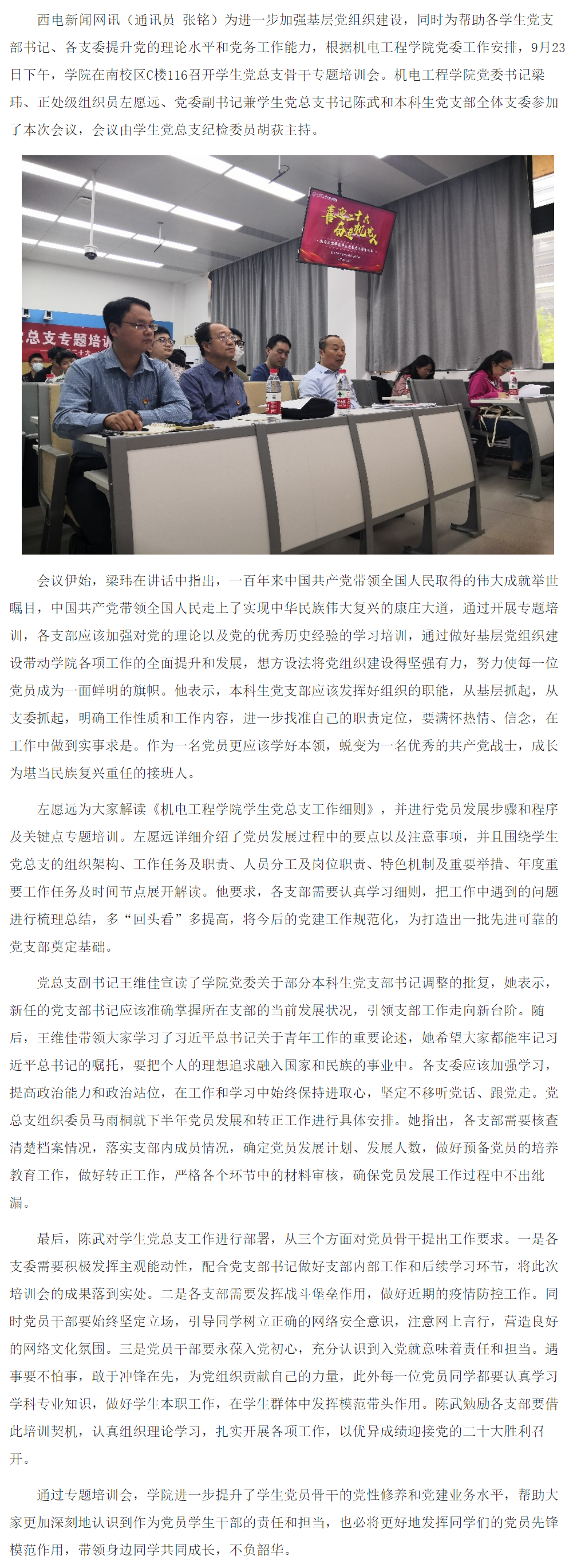 极品尤物一区二区三区小说召开学生党总支骨干专题培训会