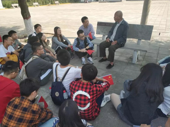 本次爱国主义教育活动,机电院邀请到了两位革命老战士——参加抗美援朝战争的王志恒老人和参加解放战争的苏国正老人。两位老人在几位党员的搀扶下坐在石凳上,其他的党员们便席地而坐,仔细聆听老兵们历经的革命往事。