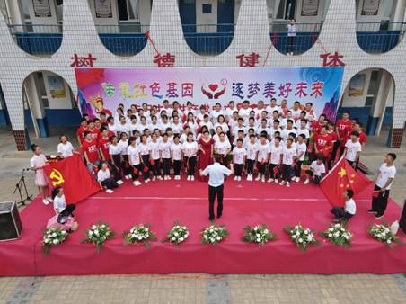 此次庆祝建党100周年文艺演出龙池镇中心小学的师生们穿着统一的文化衫进行表演,这件“永远跟党走”文化衫是由机电院和龙池镇中心小学的老师一起设计,机电院出资购买。