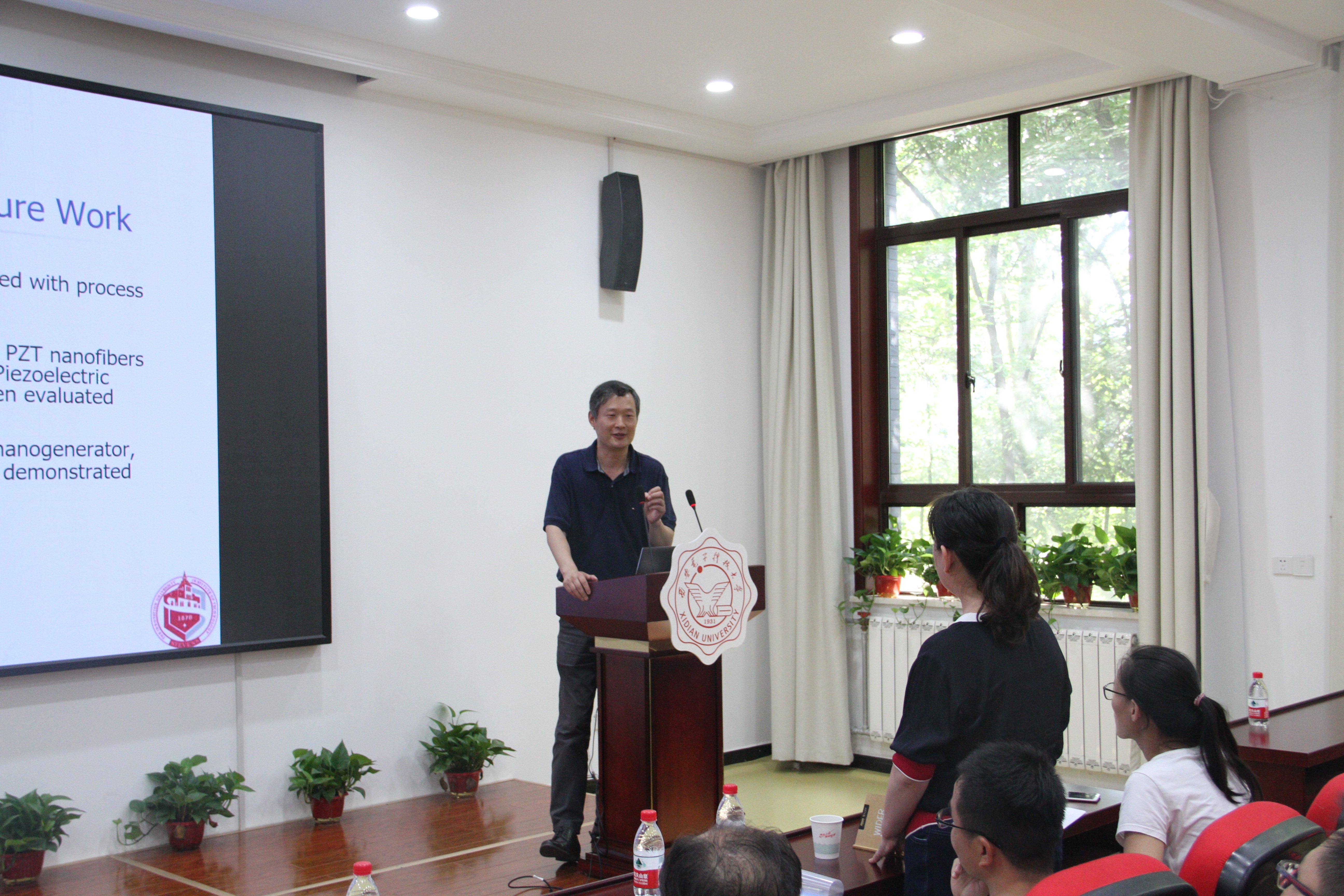 整场报告会围绕活性纳米结构在传感、驱动和能量收集方面的应用展开。师用教授首先介绍了PZT纳米纤维和纳米管的制备和表征,随后对纳米发电机在能量采集、AFC传感器和微型驱动器中的应用进行了描述,同时分析了PZT纳米纤维力学性质测试的过程和装置及其频率共振测试、杨氏模量的计算模型和刚度的计算模型。最后,师用教授进一步介绍了纳米发电机的概念、表征和自由振动测试内容及过程。