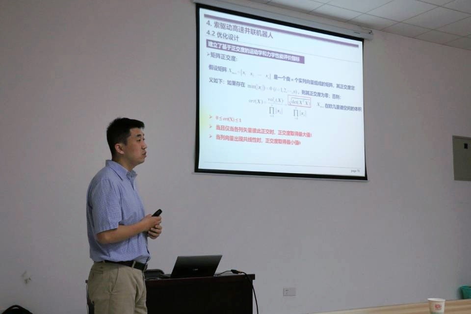 (通讯员 靖明阳)5月31日,应我校极品尤物一区二区三区小说电子装备结构设计教育部重点实验邀请,清华大学机械工程系邵珠峰副教授来访交流,并为我院师生作了题为《索驱动并联机器人的原理及应用》的学术报告。