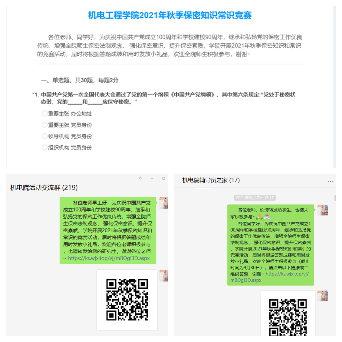 (通讯员:石贵利)为庆祝中国共产党成立100周年和学校建校90周年,继承和弘扬党的保密工作优良传统,同时激发全院师生保密知识学习兴趣,增强保密意识,营造和谐保密文化氛围,极品尤物一区二区三区小说于9月中下旬开展了2021年秋季保密知识和常识竞赛答题活动,通过微信群、学院电子屏等多种方式动员全院教师和研究生积极参与。