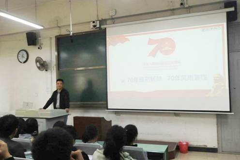 为庆祝中华人民共和国成立70华诞,极品尤物一区二区三区小说于10月21日下午4:00,在南校区A205以“70年披荆斩棘,70年风雨兼程”为主题开展主题党课,主讲人为学院党委副书记田雨。参加本次主题党课的有:各班班干部,学生组织主要干部,各辅导员老师。