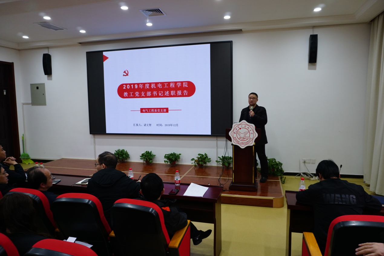 (通讯员:李治霖、赵宇)为深入学习贯彻习近平新时代中国特色社会主义思想,全面落实学校基层党建工作考核要求,根据中共陕西省委组织部《关于优化改进全省基层党建考核工作的通知》、校党委《中共西安电子科技大学委员会关于开展2019年度党组织书记抓基层党建述职评议考核工作的通知》(西电党组[2019]65号)等文件要求,机电院于12月31日—1月4日期间,针对8个教工党支部和17个学生党支部,深入开展了2019年度基层党支部述职评议考核工作。